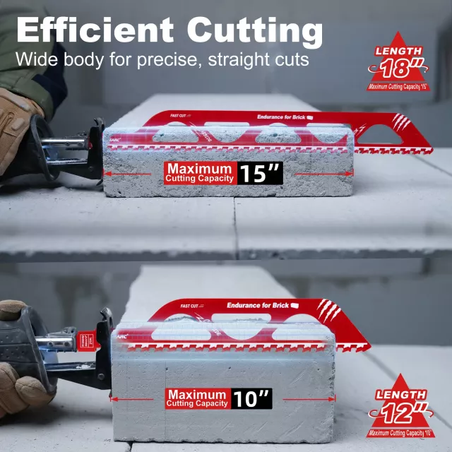 The wide-body, thick-gauge blade design reduces vibration and flex, helping you achieve straighter, cleaner cuts. Available in 12-inch and 18-inch lengths, these extra-long blades allow you to cut through entire blocks or thick materials in a single pass, saving time and effort on the job.