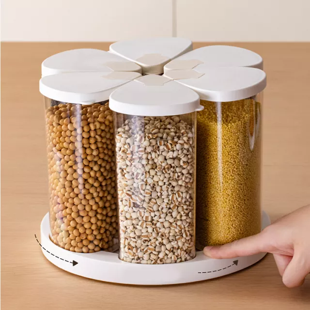 Keep your pantry neat, fresh, and easy to use with these 6 rotating grain storage jars. Designed for everyday kitchens, these containers make storing rice, cereal, beans, snacks, and dry foods simple and mess-free. Each jar holds about 22 fluid ounces, giving you the perfect size for daily essentials without taking up too much space. The smooth rotating base lets you spin and select the jar you need in seconds.