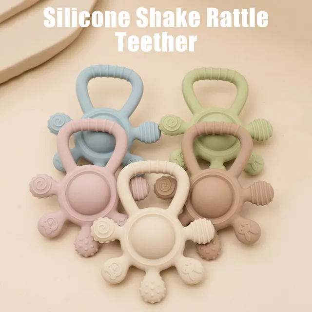 Baby Silicone Teether Rattle Toy, Easy-Grip Palm Design, BPA-Free