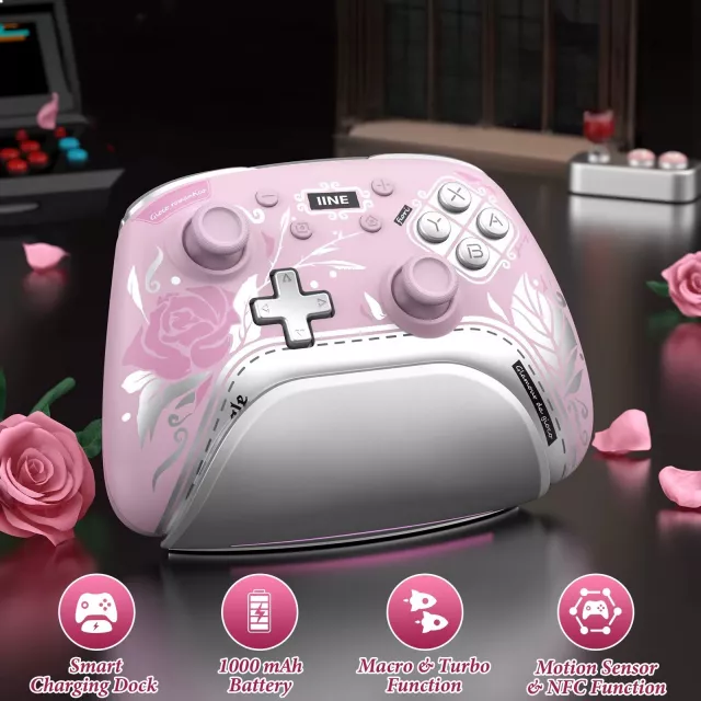 Step into a more immersive and stylish way to play with this beautifully designed wireless gaming controller and charging dock set. Inspired by elegance and comfort, it blends smooth performance with eye-catching aesthetics. Whether you are diving into long gaming sessions or enjoying a quick match, this controller feels natural in your hands and responds effortlessly to every move.