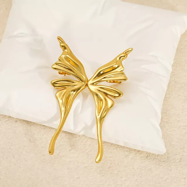 Gold Tone Stainless Steel Butterfly Drop Earrings for Women