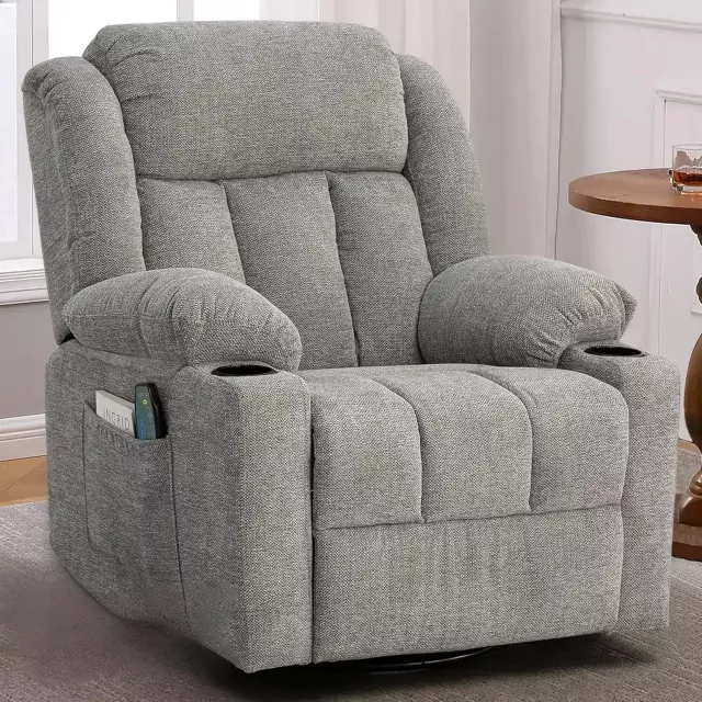 Plus, with its attractive lime gray color and soft fabric, this recliner will elevate the style of any room. The massage and heating features are perfect for those who want to relieve tension, and the 360-degree swivel ensures you can easily turn and adjust to any angle. It’s the perfect addition to any living room or bedroom, offering both comfort and functionality in one elegant package.