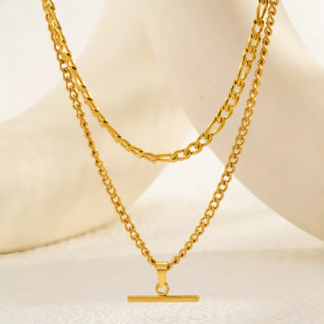 Crafted from durable stainless steel and finished with real gold PVD plating, this necklace offers lasting shine without sacrificing comfort. It is hypoallergenic and gentle on the skin, making it ideal for daily wear. The layered design saves you time while giving the appearance of carefully styled jewelry. A subtle details add a soft, feminine touch while keeping the overall look clean and modern.
