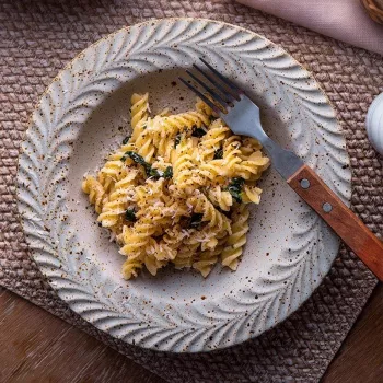 Striped Ceramic Round Platter for Salads, Serving & Table Decor