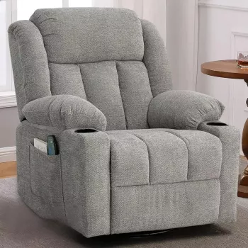 Large Swivel Recliner Chair with Massage & Heat – Soft Fabric Reclining Sofa