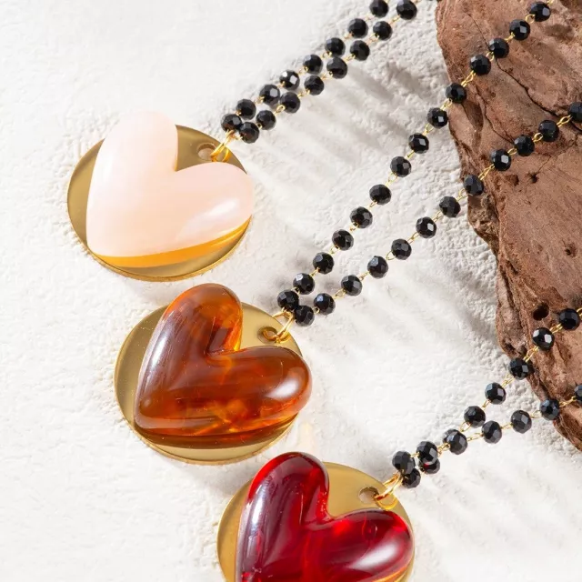 This resin heart pendant necklace is designed to capture attention and emotion in one simple, beautiful piece. With its glossy heart-shaped pendant and bold black beaded chain, it adds a romantic yet modern touch to any outfit. The contrast between the smooth resin heart and the dark acrylic beads creates a look that feels playful, stylish, and easy to wear every day. Whether you dress it up or keep it casual, this necklace blends effortlessly into your personal style.
