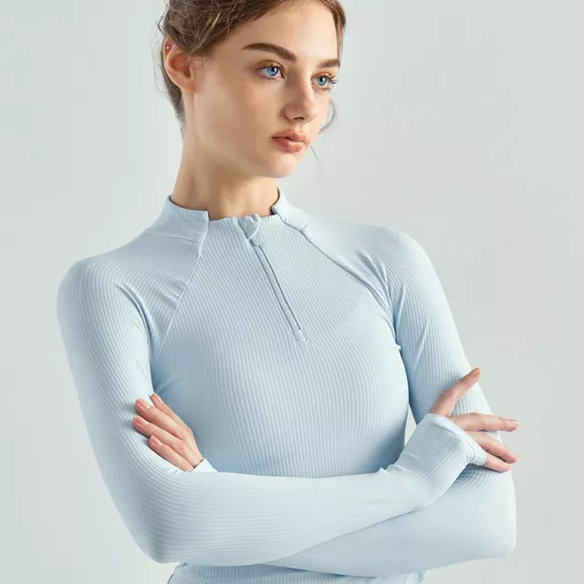 Seamless Half-Zip Slim Fit Long Sleeve Quick-Dry Yoga Top for Women