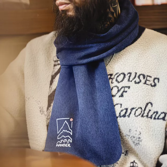 The unique blue printed design sets this scarf apart from ordinary winter accessories. It blends classic stripes with a modern look, making it easy to match with coats, jackets, hoodies, and sweaters. Its soft, flexible fabric offers warmth without stiffness, so you can move freely and stay relaxed throughout the day.