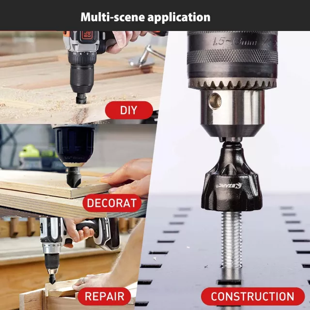 • Works with standard drills using a quick-release shank